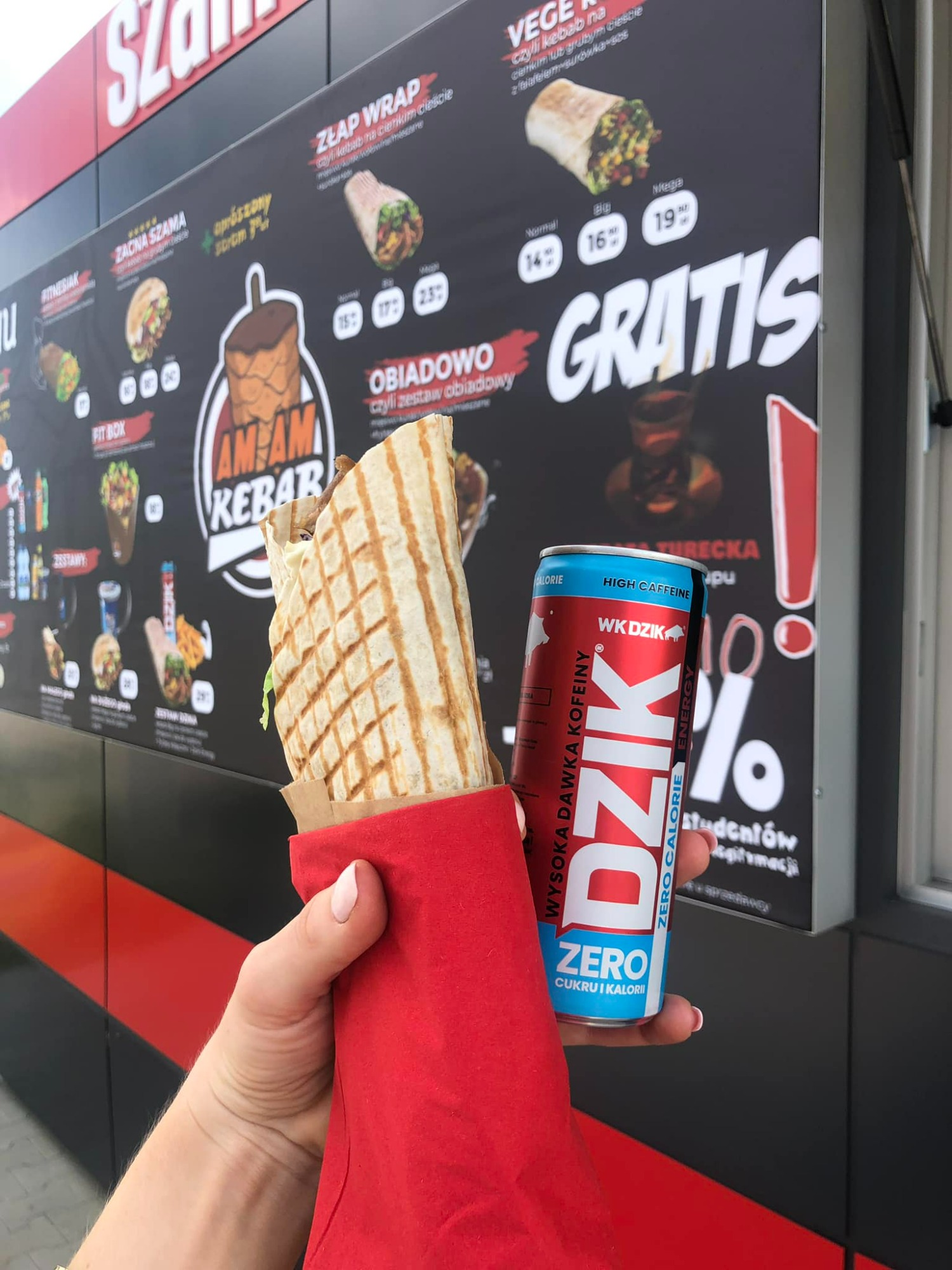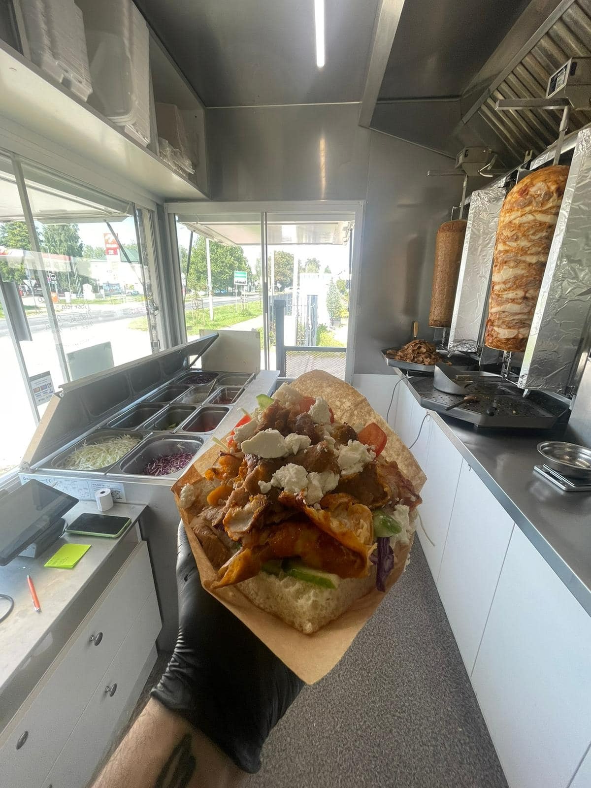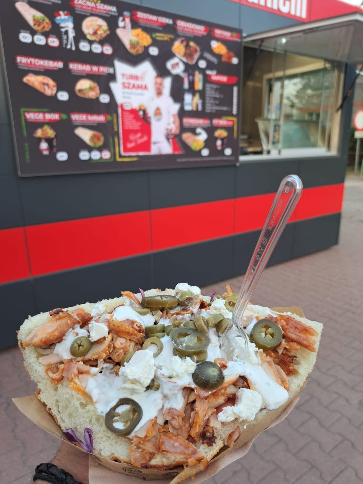pita turecka 65 g + mięso 160 g + surówki + sos -
